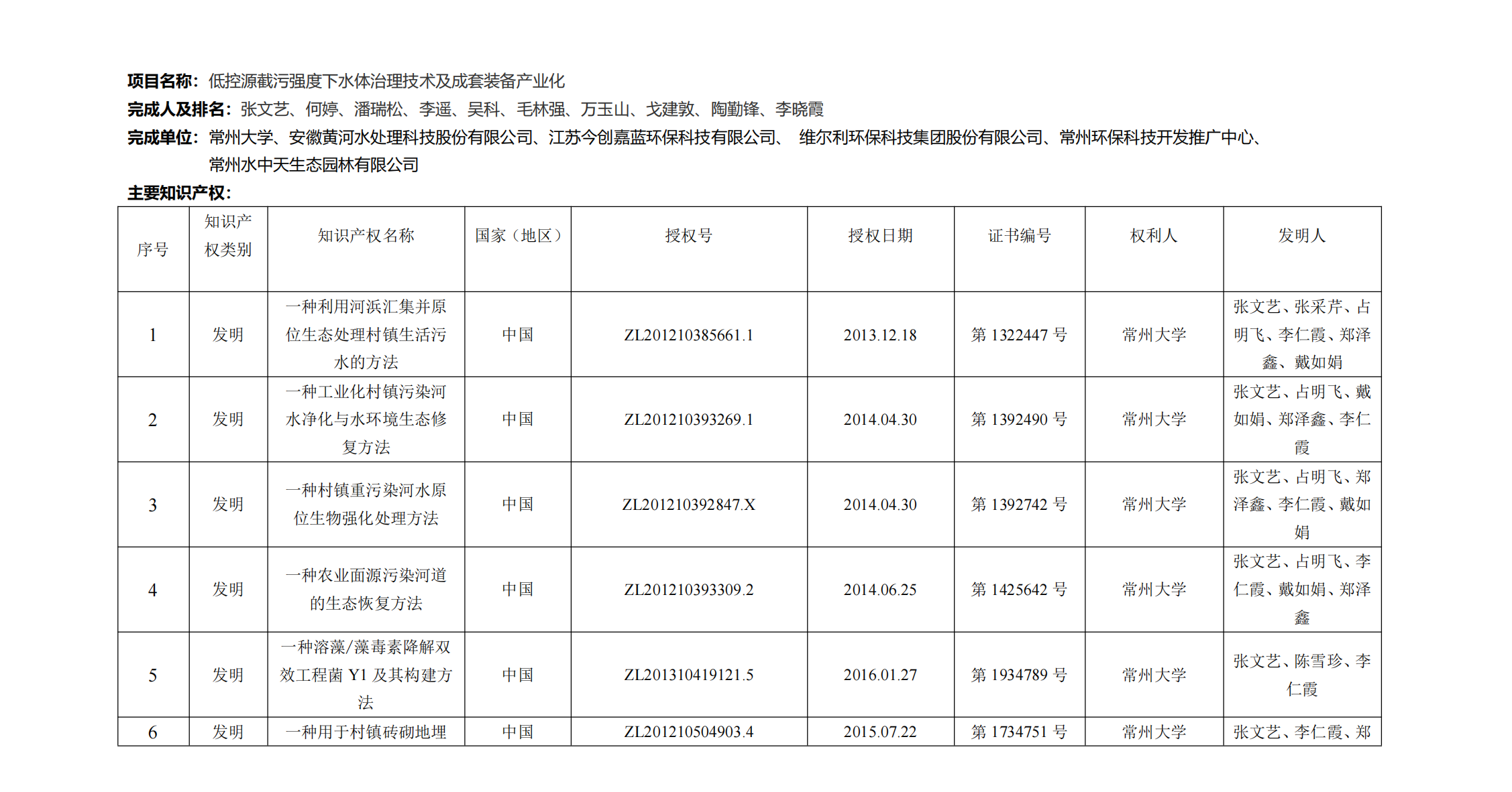 按照《江苏省科技厅关于2021年度江苏省科学技术奖提名工作的通知》(苏科成发〔2021〕73号)的要求,现将我司李遥参与由常州大学牵头申报并经江苏省环境科学学会拟提名的2021年度江苏省科学技术奖项目“低控源截污强度下水体治理技术及成套装备产业化”予以公示。公示内容包括项目名称、完成人、完成单位、主要知识产权目录等,详见附件。公示期为2021年5月10日-2021年5月17日。